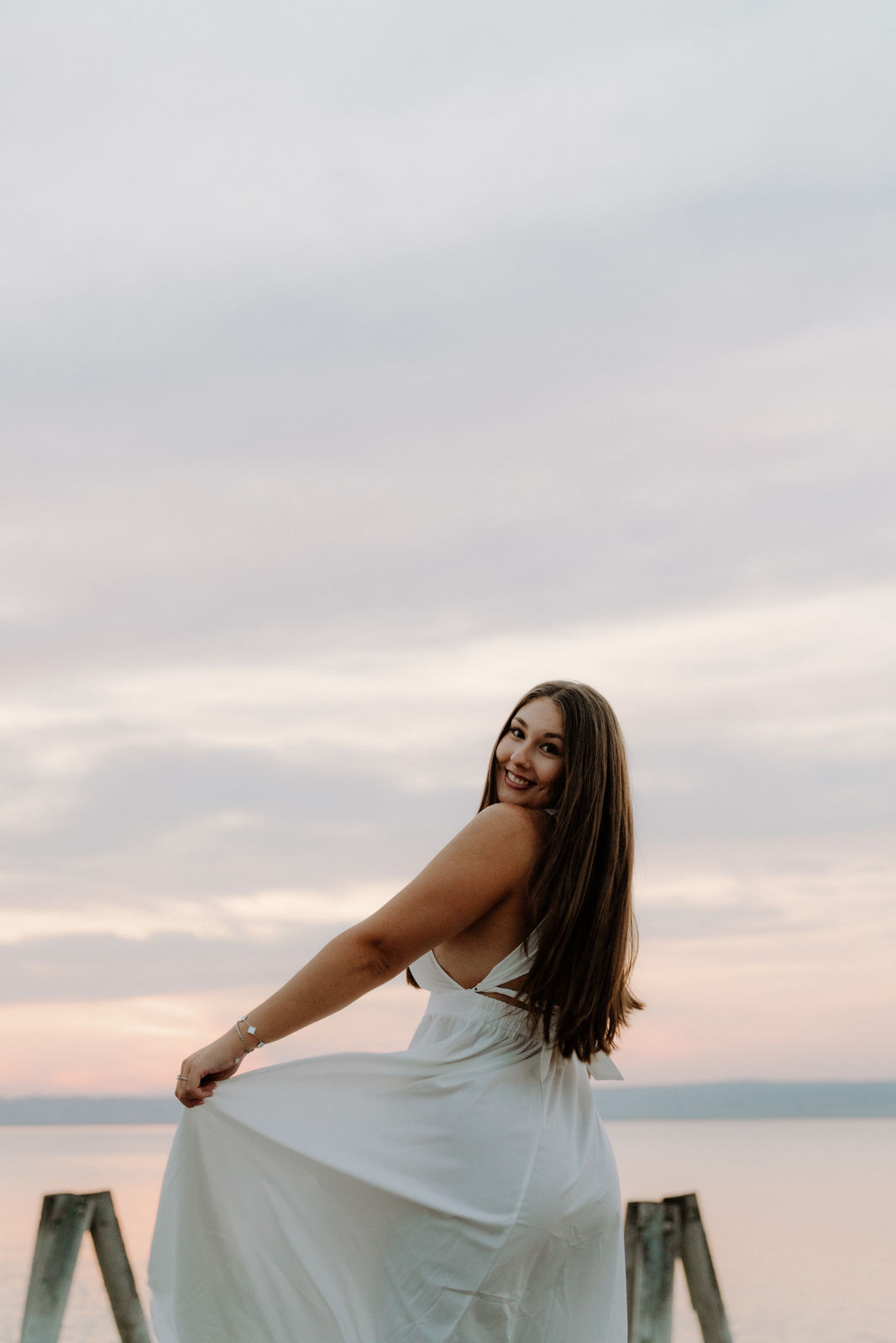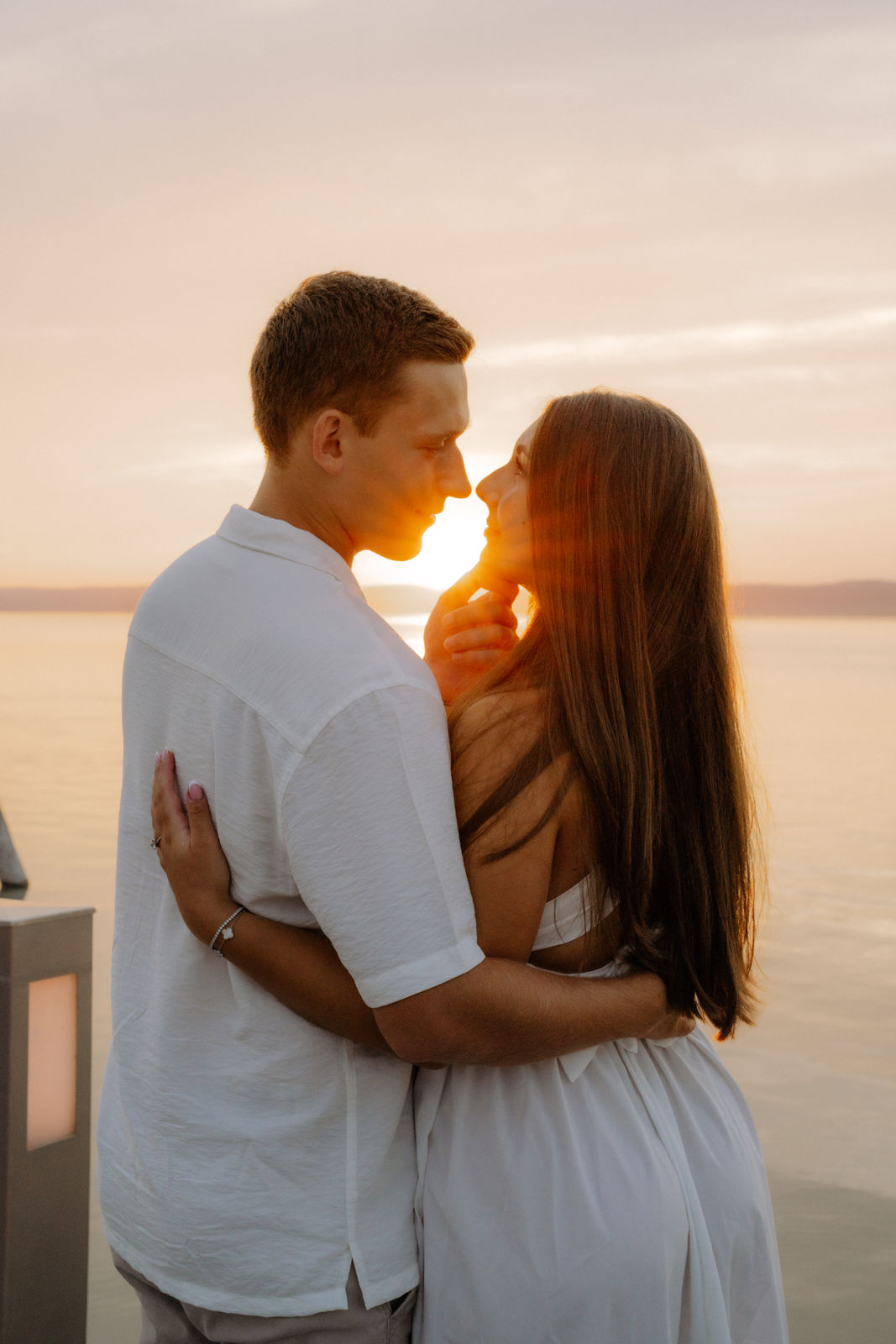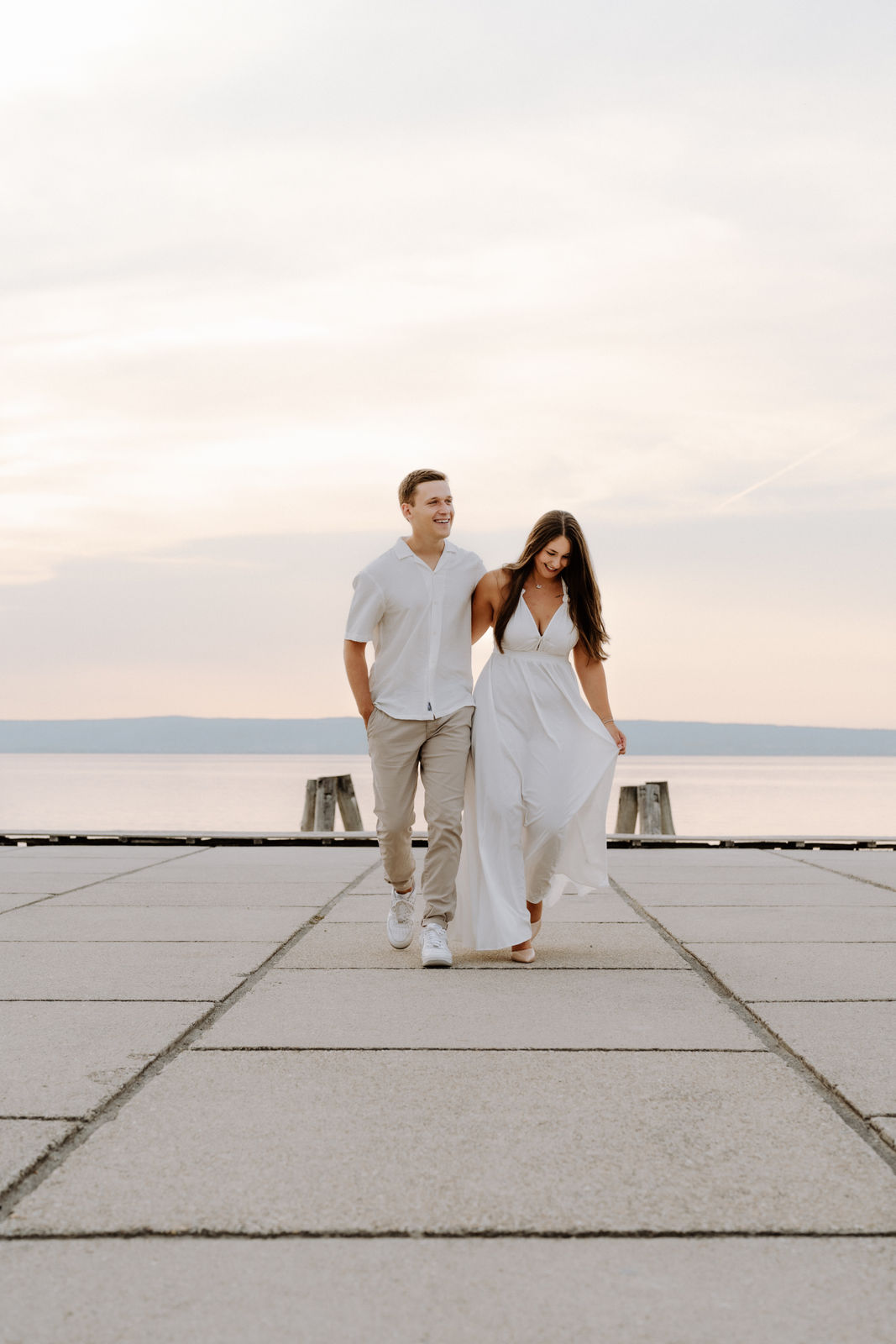 Die intime Verlobungssession fand am See statt, der für Chantal vor allem durch die liebevolle Erinnerung an ihre verstorbene Oma eine tiefe Bedeutung hat. In der sanften Lichtstimmung des Sonnenuntergangs haben wir ihre Zweisamkeit ganz behutsam und natürlich festgehalten, mit einer Atmosphäre, die von Wärme, Zartheit und einer leisen Melancholie geprägt ist. So entstanden romantische, einfühlsame und gleichzeitig elegante Bilder, die zeigen, wie persönliche Erinnerungen und Liebe Hand in Hand gehen und besondere Momente unvergesslich machen.