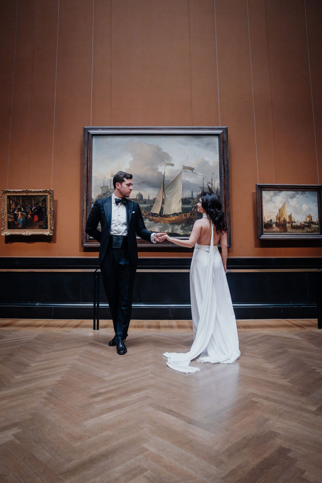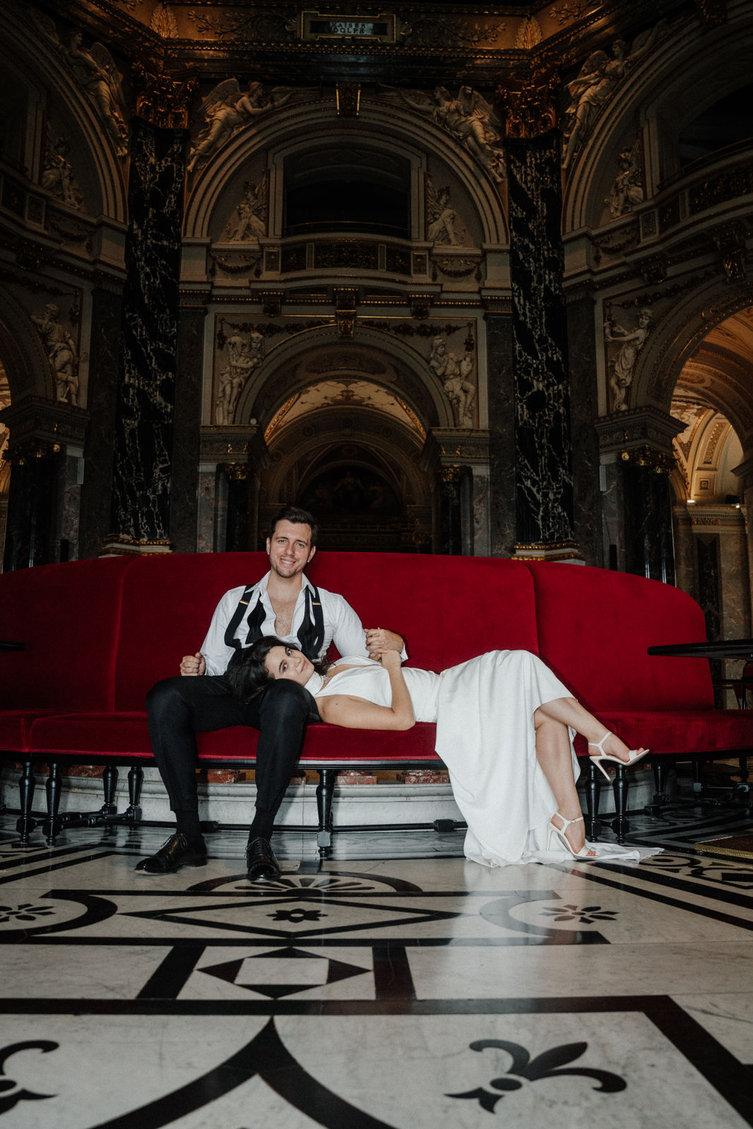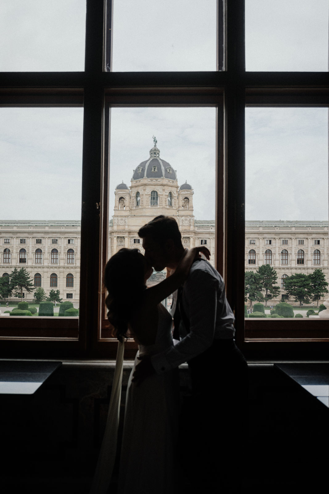 Alexandra und Claudia haben im Kunsthistorischen Museum in Wien eine unvergleichliche Kulisse gefunden, die perfekt ihre zeitlose Eleganz unterstreicht.