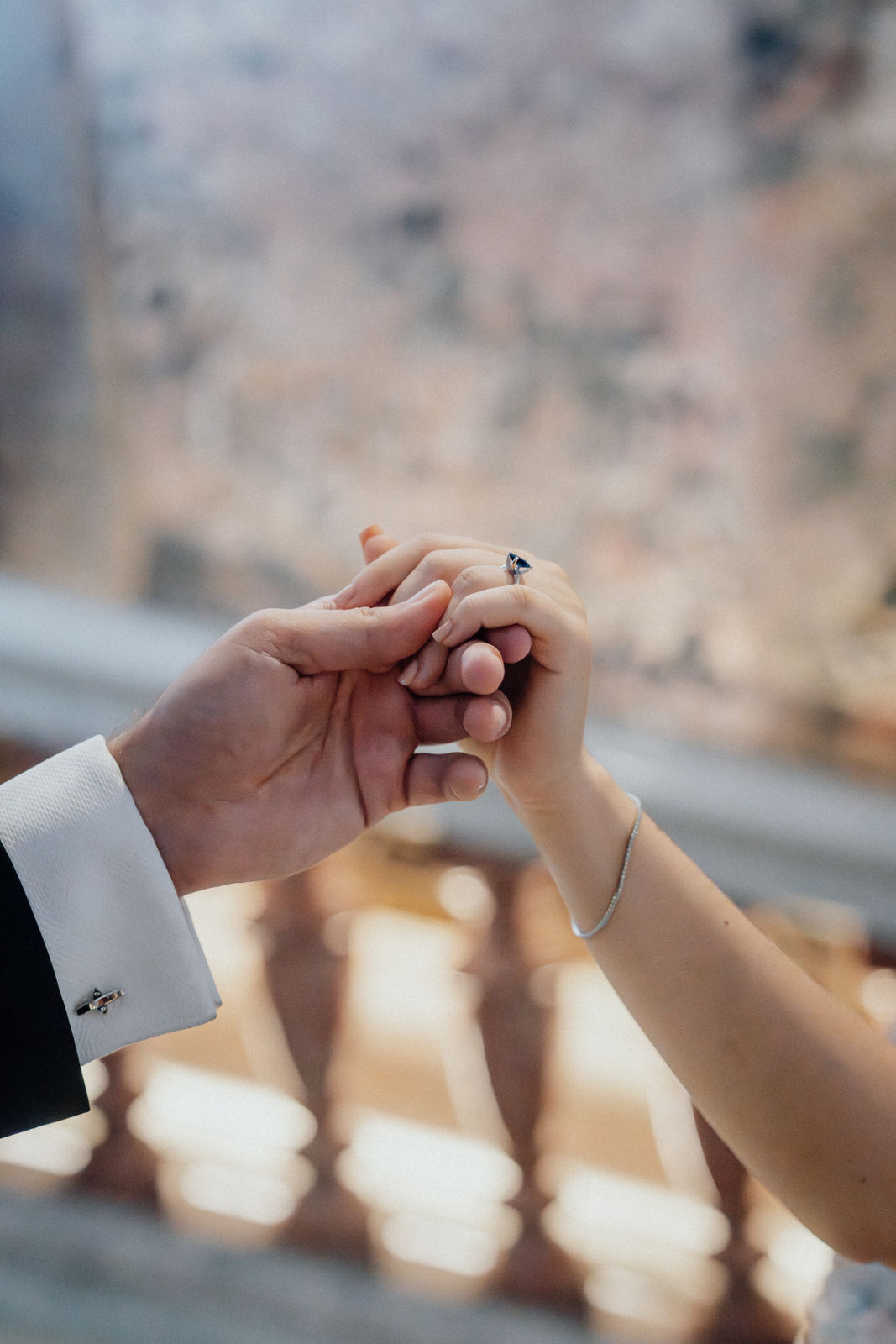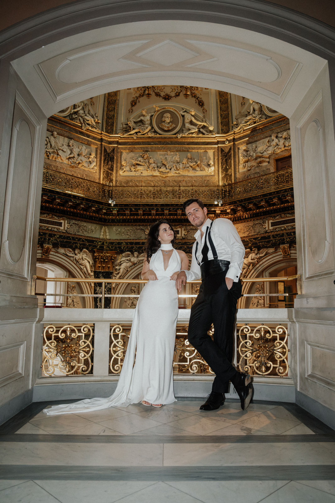 Dieses Verlobungsshooting ist eine Hommage an die Ästhetik vergangener Epochen, eingefangen in Bildern, die zeitlose Liebe in einem Kunstwerk der Moderne verwandeln.