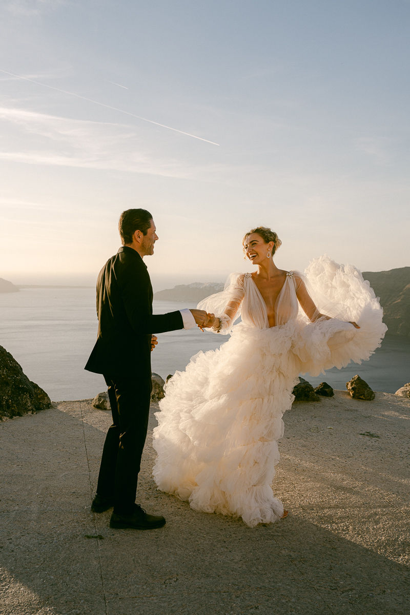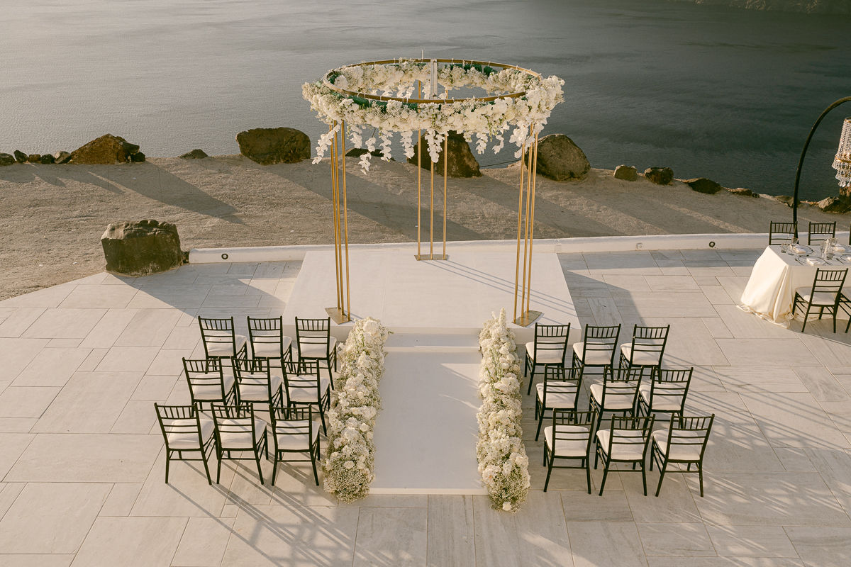 Die intime Feier mit spektakulärem Blick auf die berühmte Caldera war ein perfekter Mix aus griechischem Charme und persönlicher Eleganz – ein unvergesslicher Moment inmitten mediterraner Schönheit.
