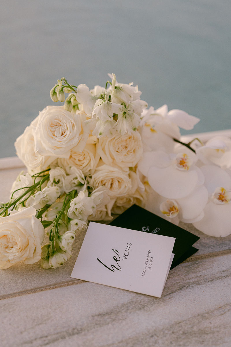 In der atemberaubenden Kulisse von Santorini, hoch über der tiefblauen Ägäis, vereinten sich Izzy & Dann im exklusiven Rocabella Santorini Resort & Spa, für eine Hochzeit, die ganz ihrem Stil entsprach: klein, luxuriös und voller Herzlichkeit.
